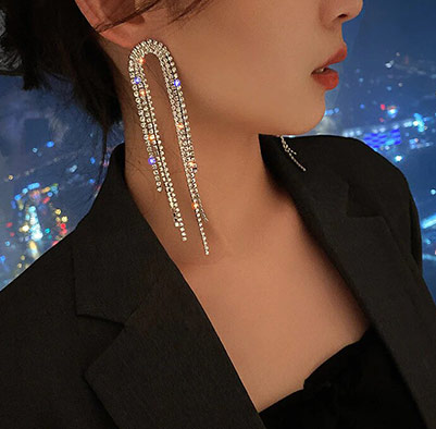 Ces boucles d'oreilles strass pendantes feront leur petit effet lors de vos soirées.